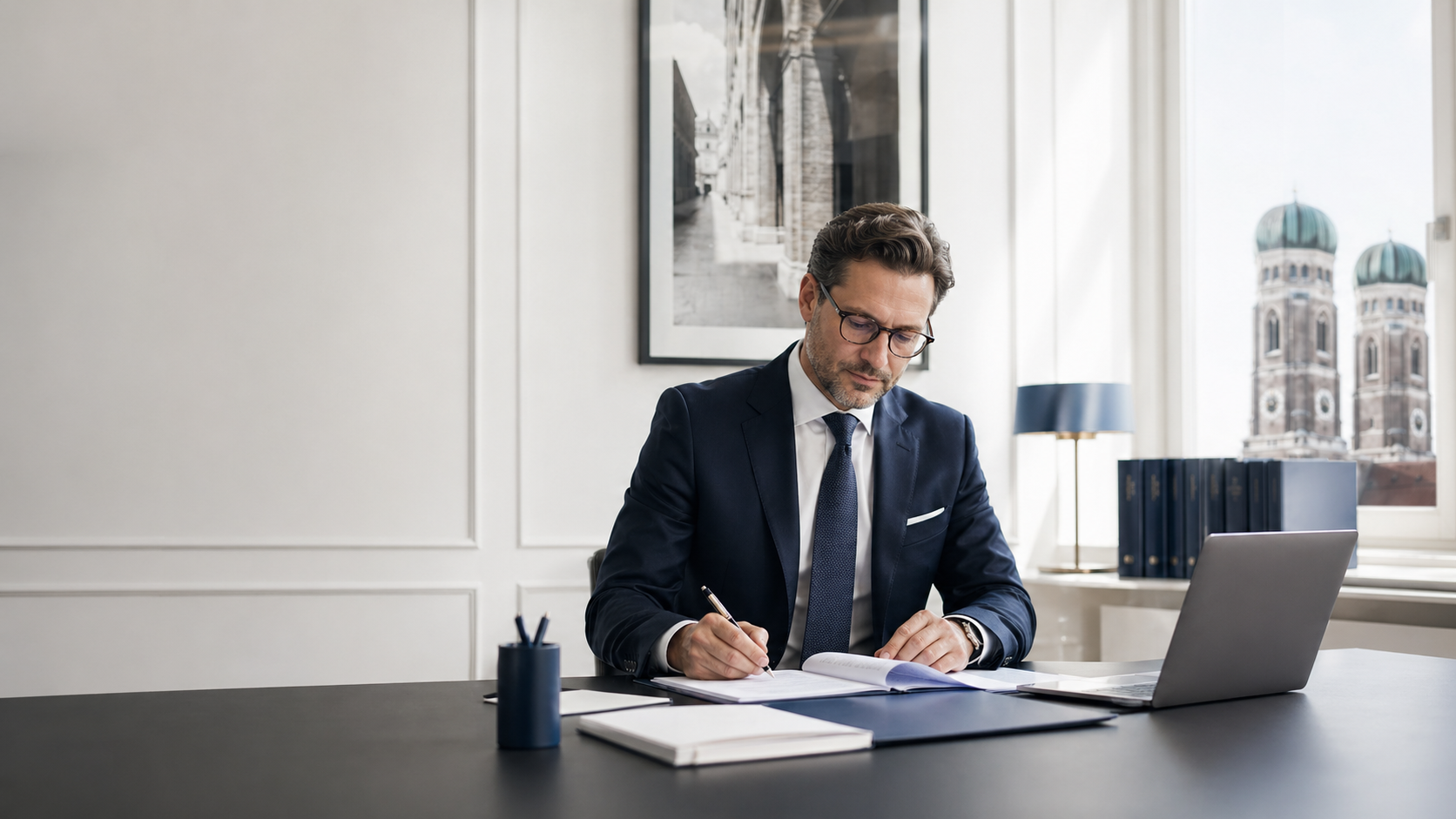 Nach Stationen in einer Münchener Wirtschaftskanzlei und einem mehrjährigen Auslandsaufenthalt in Zürich habe ich meine eigene Kanzlei gegründet. Was mich seither leitet: jedes Mandat persönlich, jede Strategie maßgeschneidert. Recht ist für mich kein abstraktes System, sondern ein Werkzeug — präzise eingesetzt, schafft es Vertrauen, Sicherheit und unternehmerischen Spielraum.